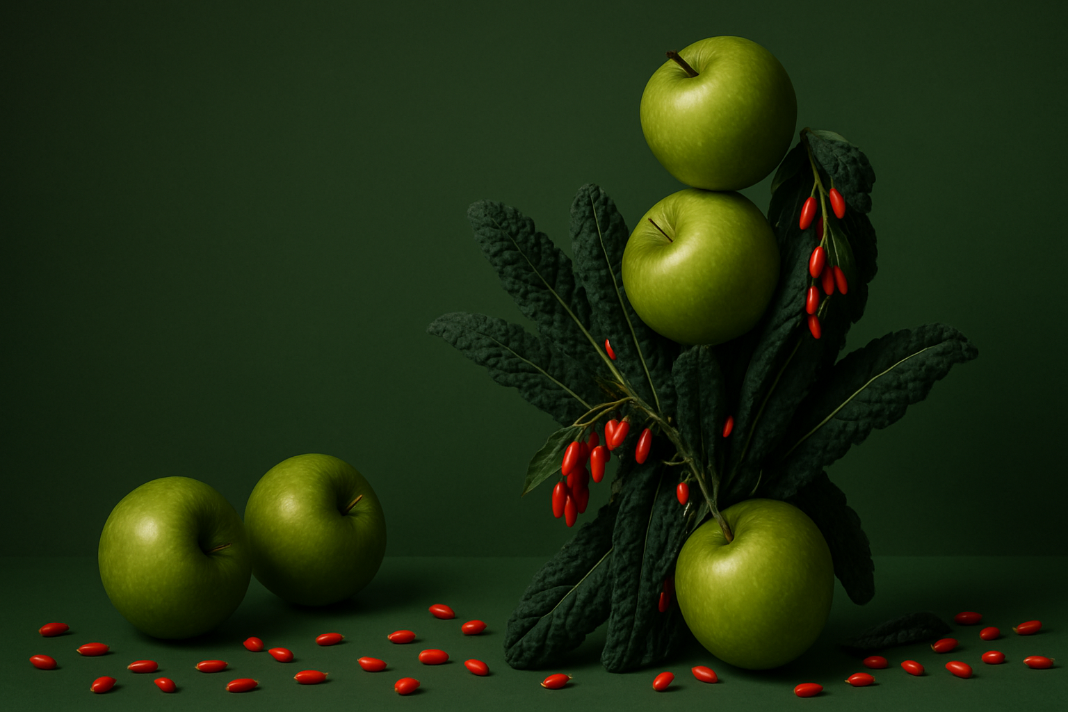 Brings together the vitality of the Alps and the wisdom of the East. Born in the pure mountain valleys of South Tyrol, this unique formula combines apple, with dark kale and goji berry.